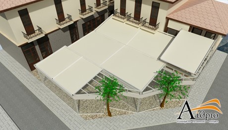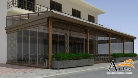 Κατασκευή Pergotenta και πτυσσόμενα κρύσταλλα σε καφετέρια.