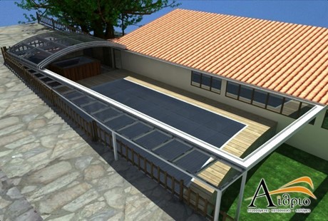 Κάλυψη πισίνας με ανοιγόμενο στέγαστρο με πολυκαρβονικό
